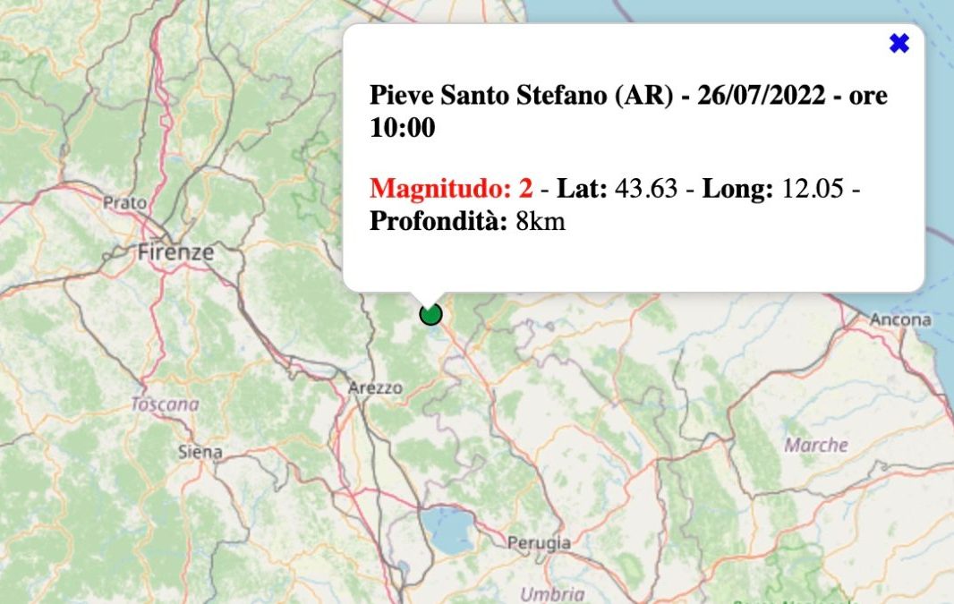 Terremoto In Toscana Oggi Martedi 26 Luglio 2022 Scossa M 2 0 In Provincia Di Arezzo Dati Ingv